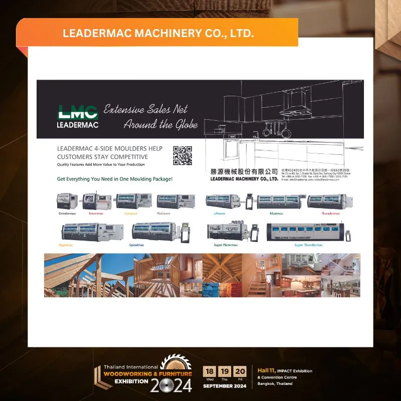 “Fifty tow years ago, Leademac started designing and manufacturing 4-sided moulders. Our commitment was to offer the best possible machines to help customers stay competitive. Through several years of effort, Leadermac has grown steadily to become a world-class 4-sided moulder manufacturer with products sold in over 65 countries worldwide. Over the years, there have been many changes in Leadermac’s size, business, and reputation; however, our insistence on providing the best possible machines for our customers has never changed. Looking towards the future, we will strive hard to achieve our strategic target and meet new challenges.